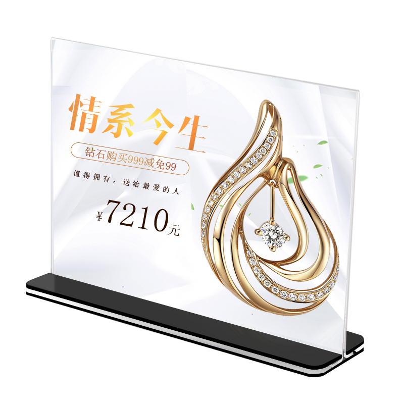 A4亚克力台卡黑底桌牌抽拉展示架 A/3/5/6展示T型立牌双面透明台