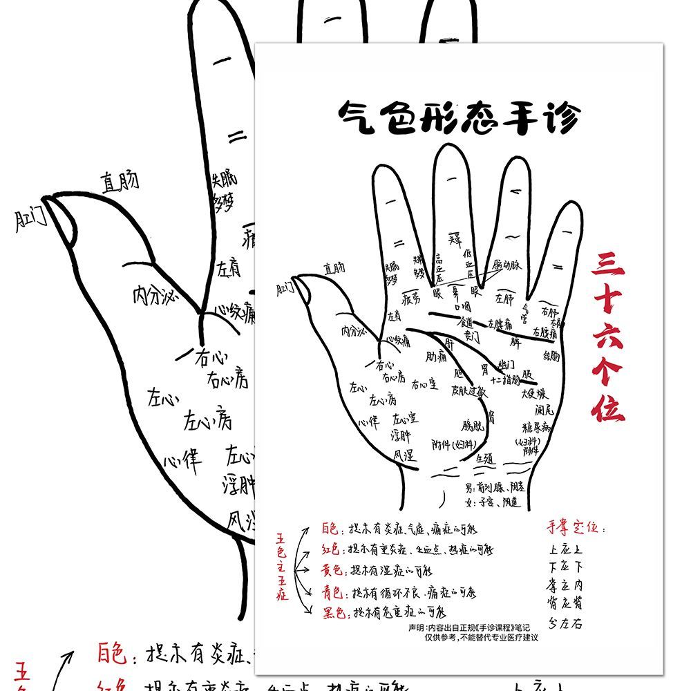 手诊知识总结贴纸中医养生健康知识根据手掌诊断症状笔记贴画