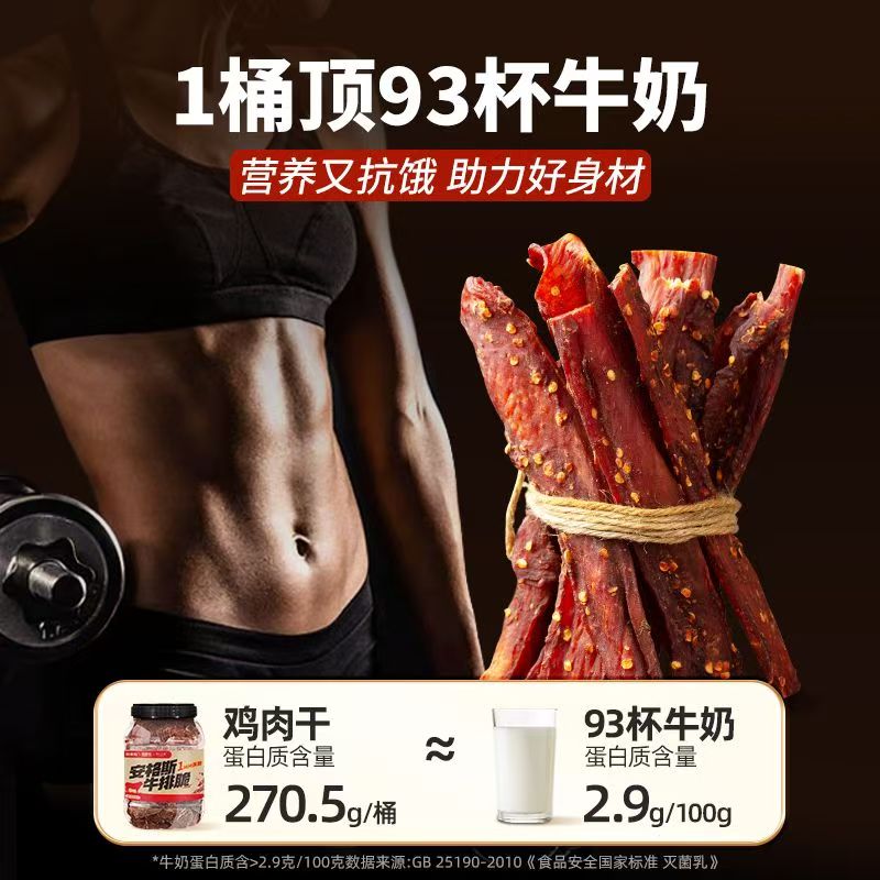 风干鸡肉干鸡胸肉条减低耐嚼卡脂休闲晚上解饿馋食品零食即食健身