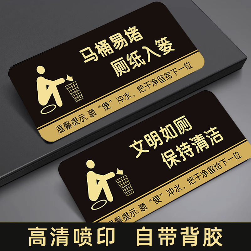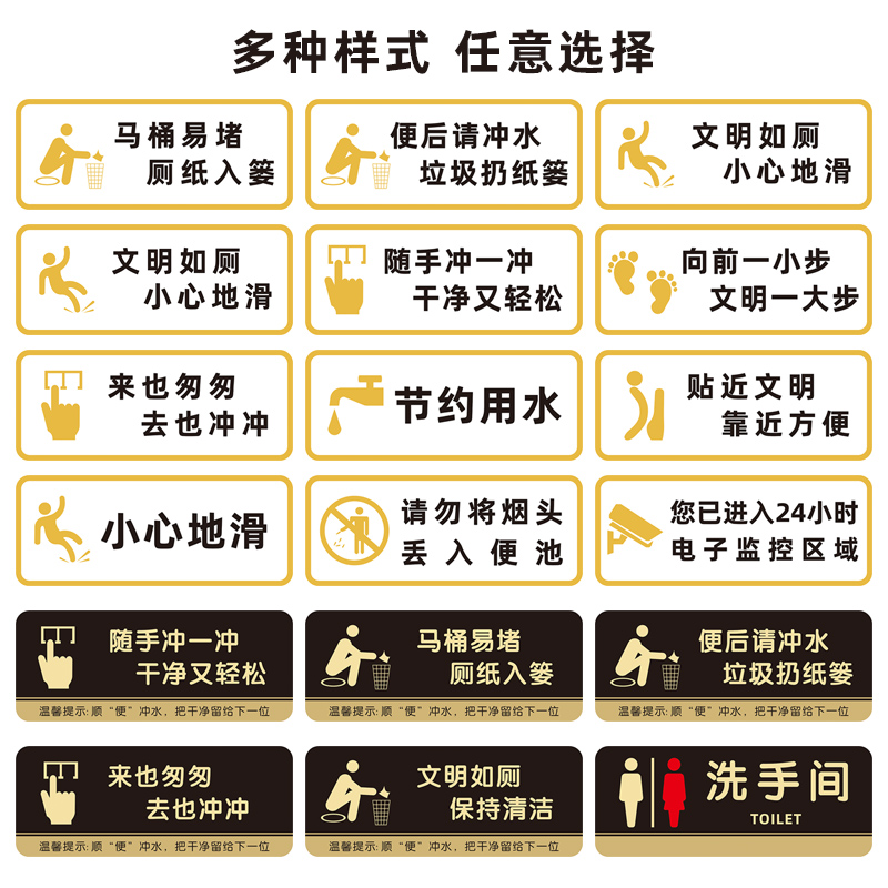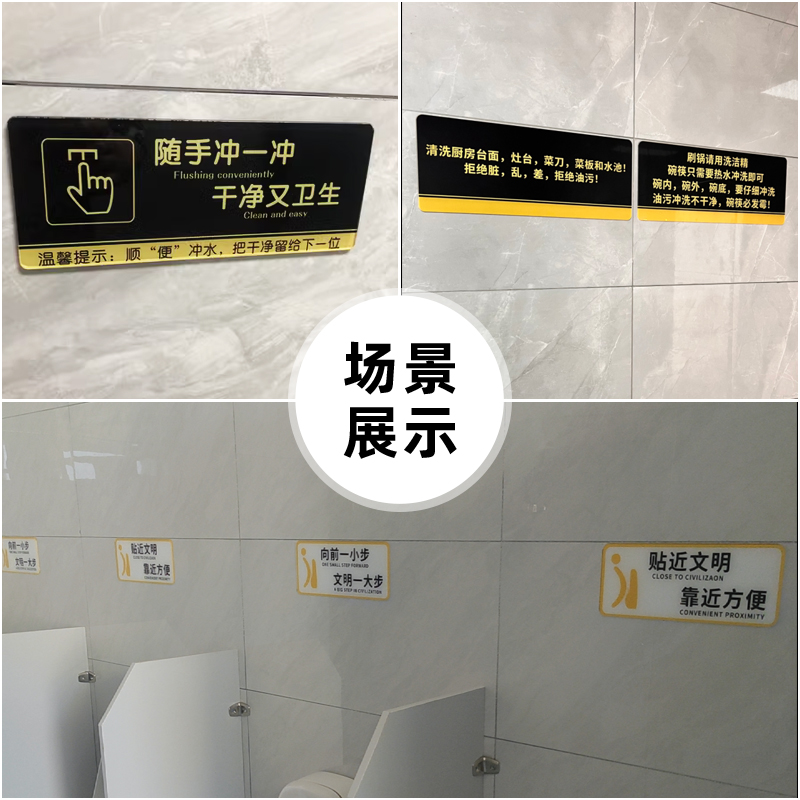 厕所卫生间洗手间标识牌文明标语温馨提示牌提示贴提示语标识贴纸公共来也匆匆便后请冲水厕纸请入篓地滑随手