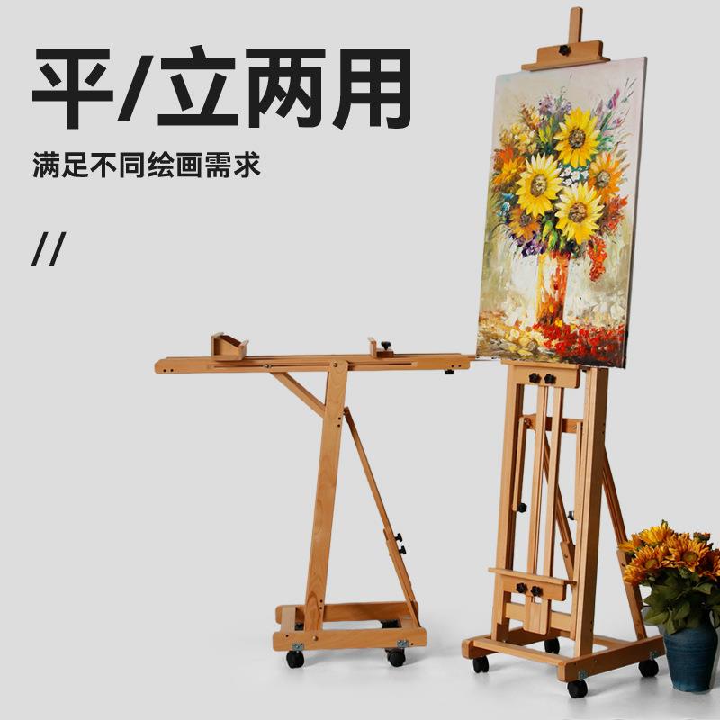 木榉制可降109折叠平立两用展示架画架美术专用带轮画素升描油架