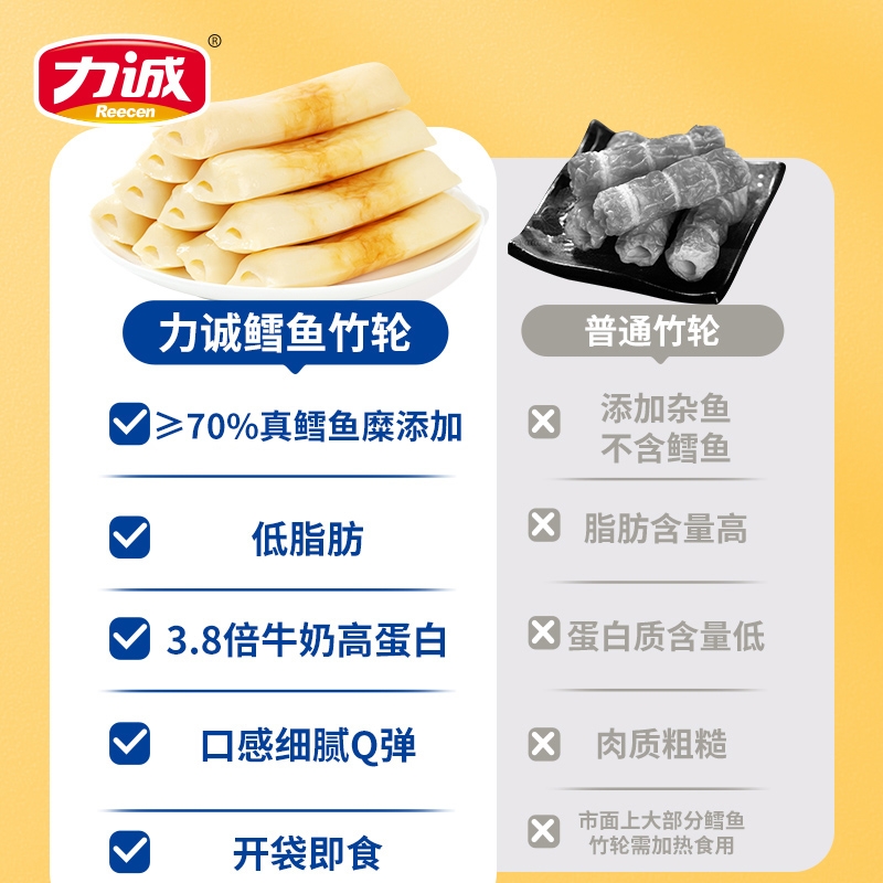 力诚鳕鱼竹轮低脂高蛋白40g关东煮食材家庭火锅麻辣烫竹轮卷解馋