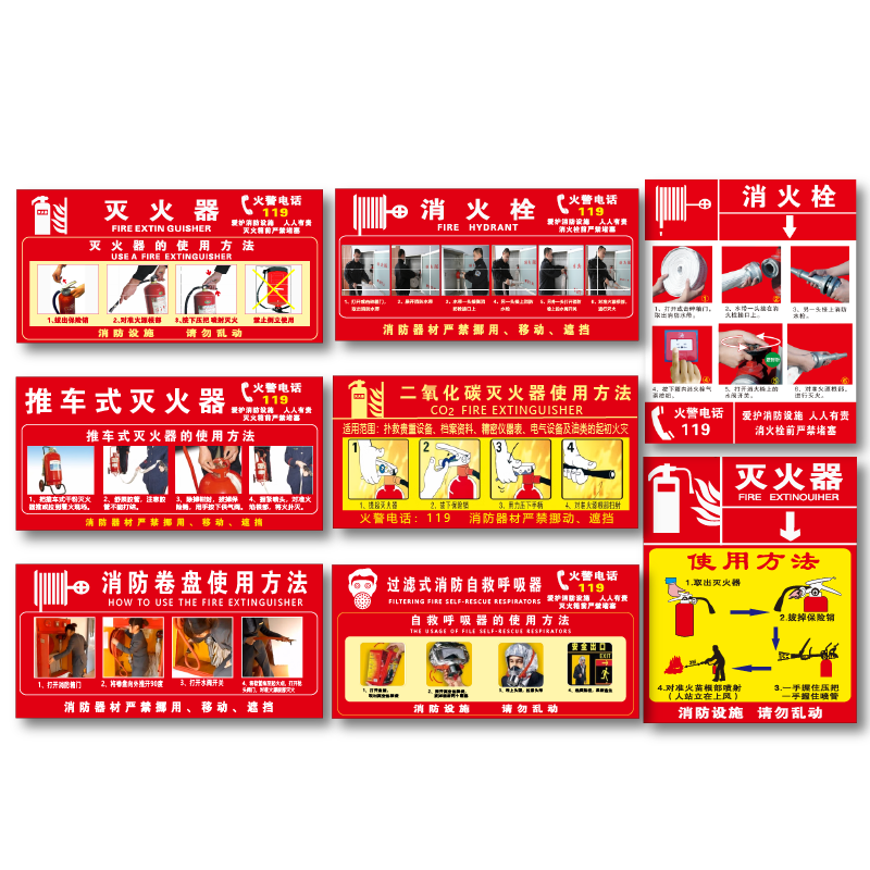 消防器材标识贴灭火器消火栓使用方法消防栓使用说明自粘贴纸灭火器放置点指示牌手推式灭火器使用方法标识牌