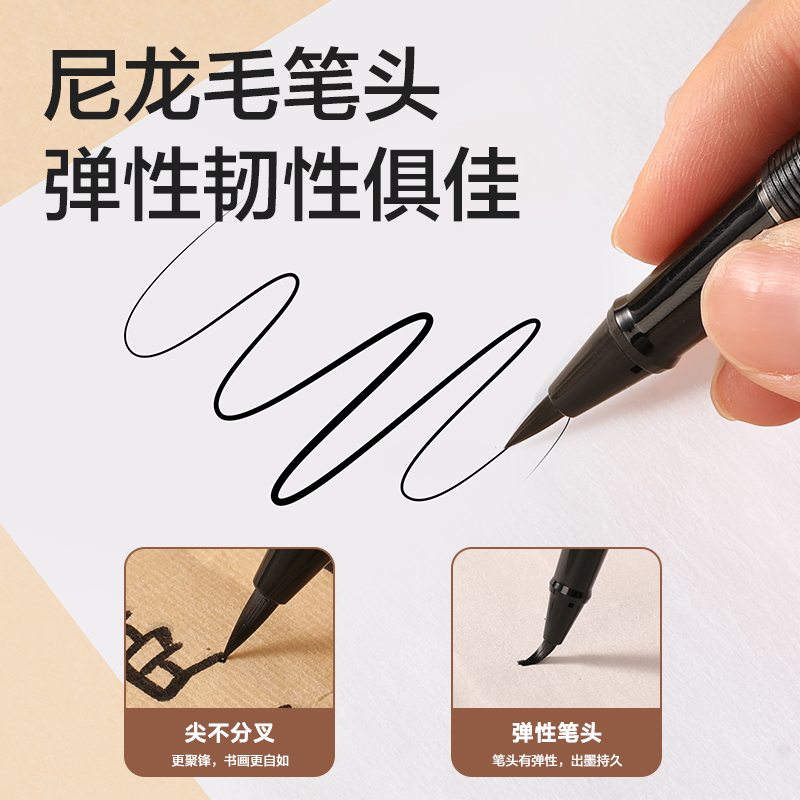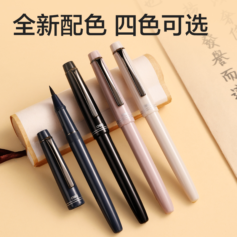 得力钢笔式毛笔自带墨囊可换无需蘸墨练字书法笔秀丽笔软头临摹字帖成人初学者字帖练习便携