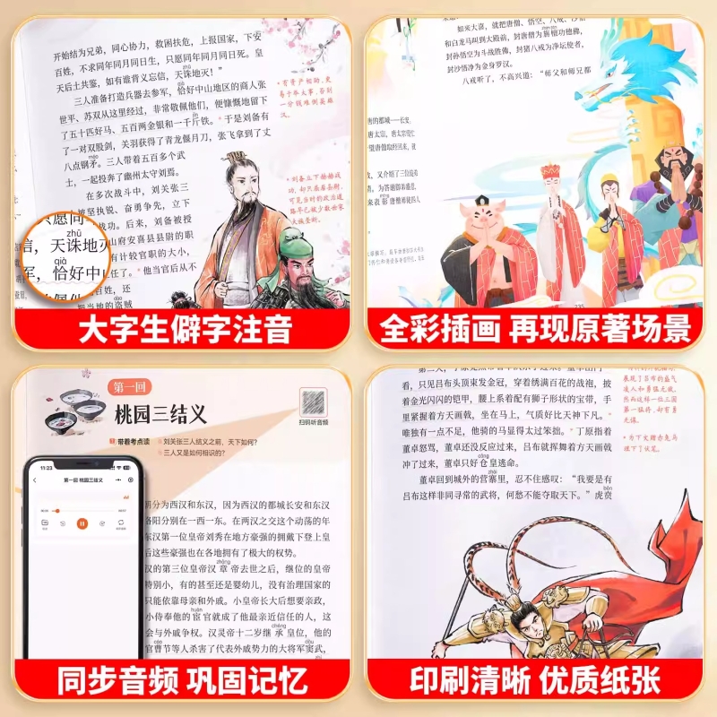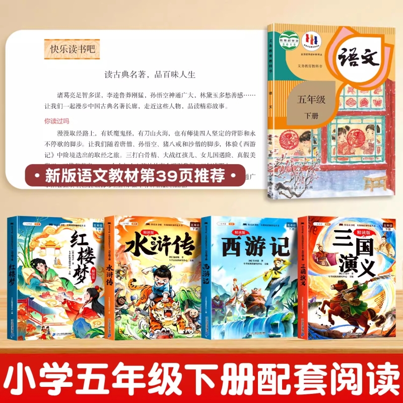 四大名著小学生版原著正版五年级下册必读课外书籍5上册4册西游记红楼梦水浒传三国演义快乐读书吧儿童绘本读物青少年三国志历史