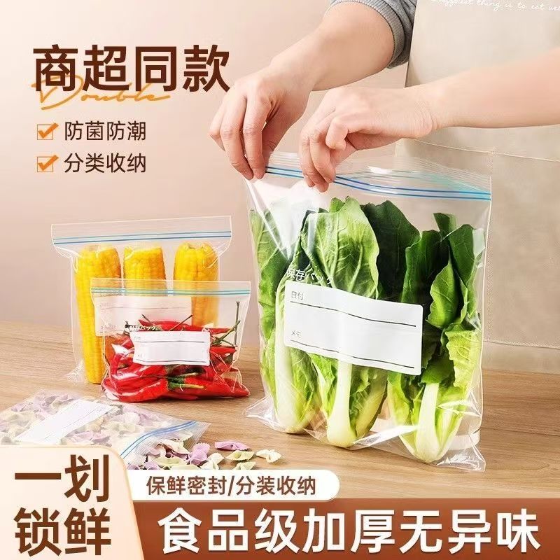 保鲜袋食品密封袋家用冰箱专用冷冻自封袋带封口塑封加厚收纳袋