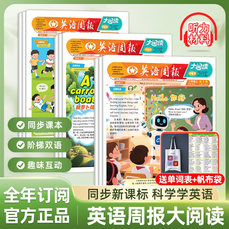 英语周报大阅读2025年【全年/半年订阅】3-6年级小学英语画报暑假课外知识拓展提升报刊7-15岁黄金年龄段读物趣味互动增强阅读兴趣