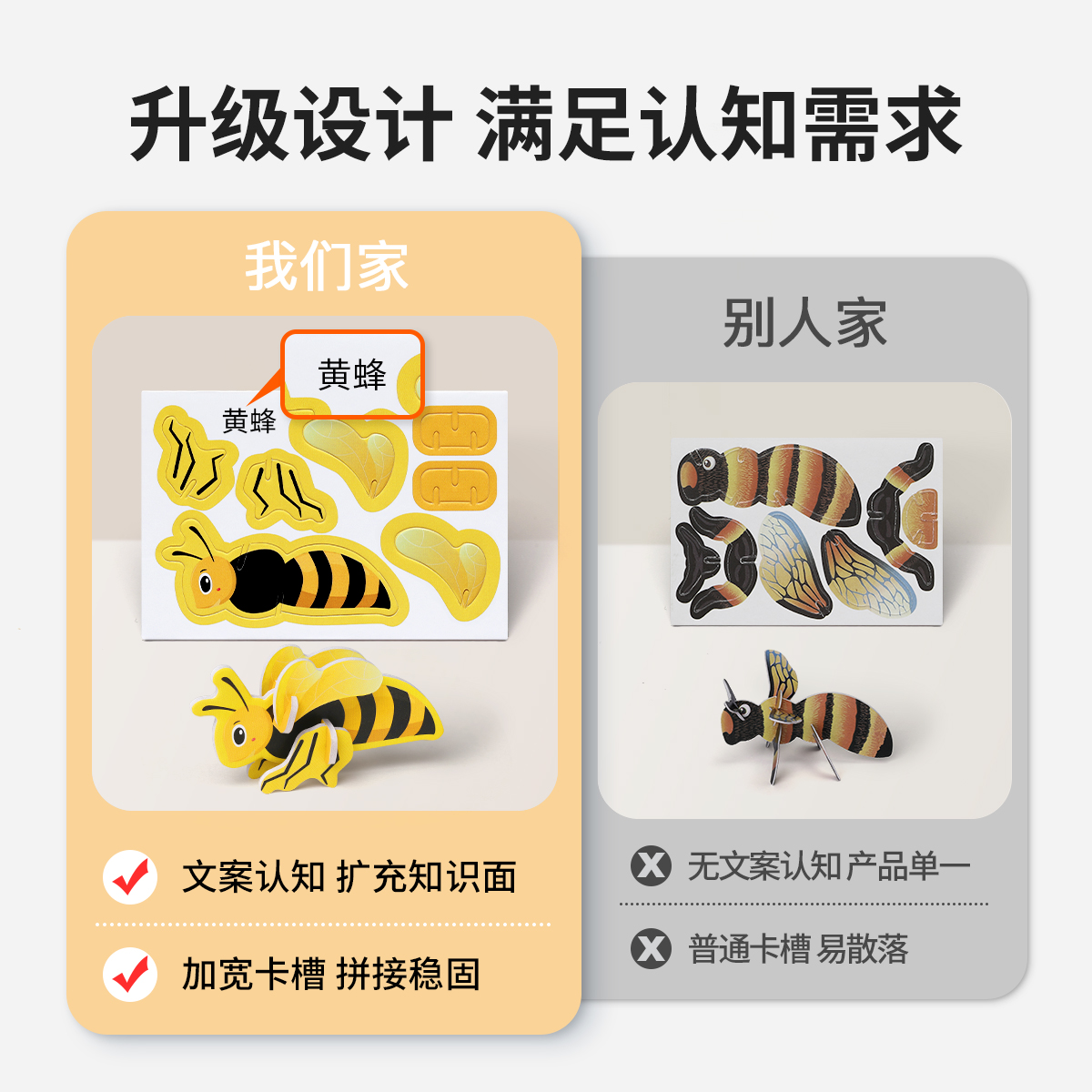 3D趣味昆虫立体拼图儿童创意DIY玩具幼儿园早教手工拼装益智卡片