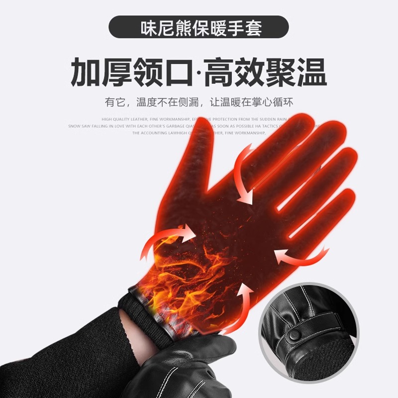 皮手套男士冬季骑行加绒加厚防风防水保暖触屏电动摩托车防寒加棉