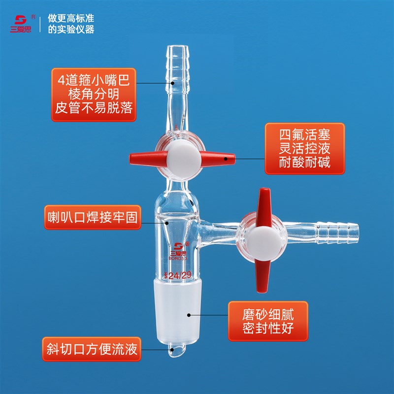 三爱思高硼硅液体或气体转移接头气体转接口抽气转接头标准磨口接