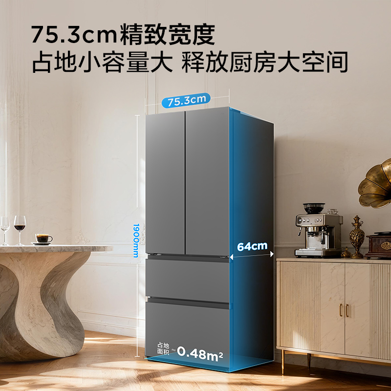 政府换新补贴海尔山茶花485L零嵌入式法式一级大容量风冷无霜冰箱