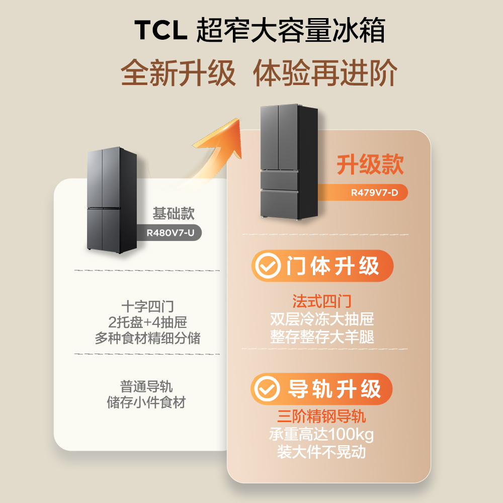 TCL 大至鲜479升法式多门四开门超窄小户型大容量净味抗菌电冰箱