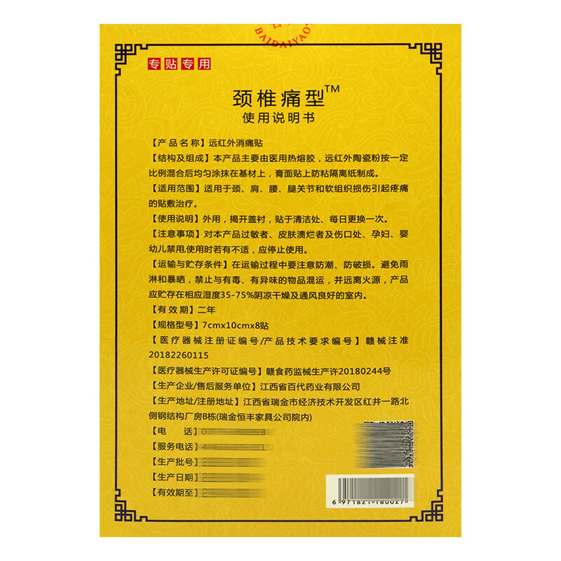 姚本仁颈椎痛型贴8贴 适用于颈肩腰腿关节