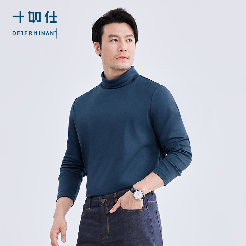 十如仕老钱风保暖高领长袖T恤吸光发热丝光上衣男装休闲日常T04