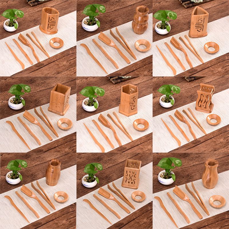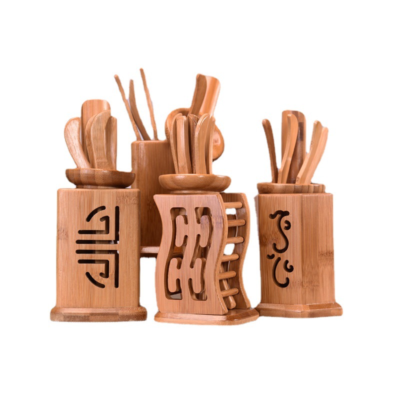 碳化竹制筒茶道六君子组合套装 异形四方镂空茶具 功夫茶具配件
