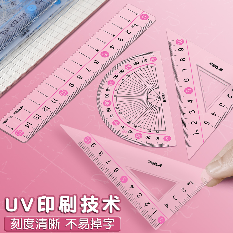 晨光套尺小学生专用四件套学生文具15cm高透明儿童塑料尺子直尺20cm金属格尺多功能三角板量角器学习绘图套装