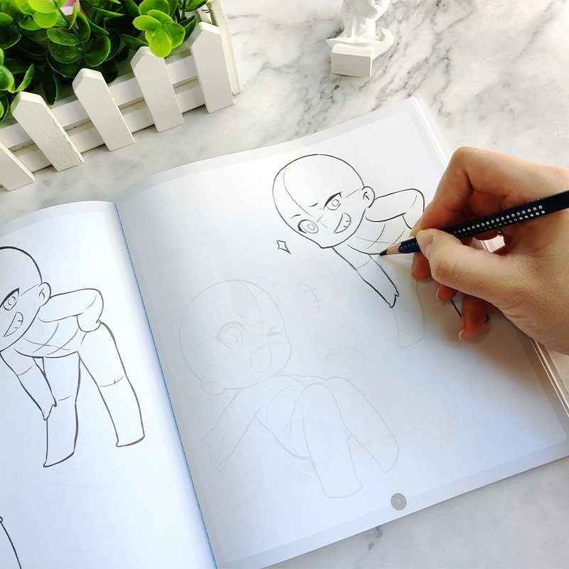 Q版人体结构动态临摹练习册 漫画人物绘画 动漫美少女二次元萝莉形体构造临摹画册 描摹本新手学画画零基础