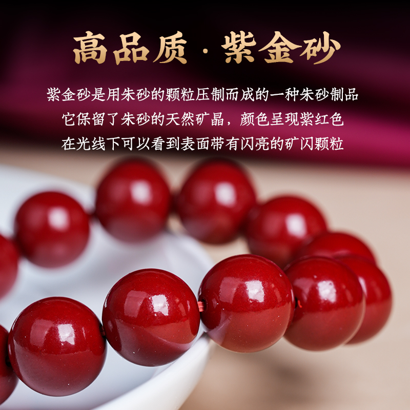 天然原矿紫金朱砂手链女款正品男士转运珠真品晶体帝王砂手串