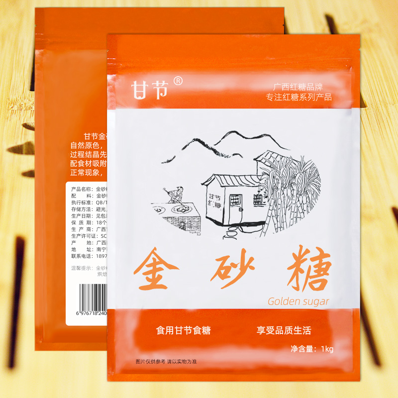 广西甘节金砂糖2斤黄砂糖二号砂糖粗糖咖啡糕点奶茶甘蔗糖食糖