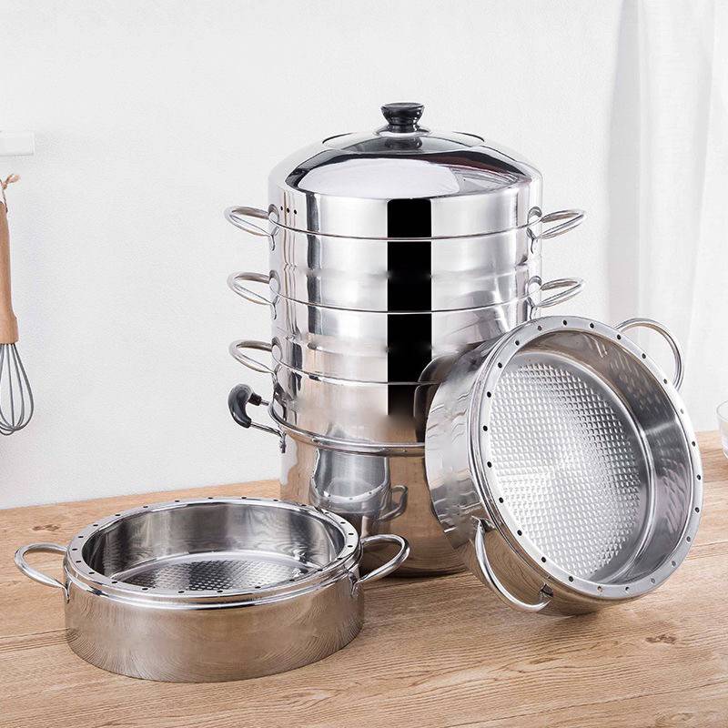 新款【加厚】实心蒸饭锅不锈钢无孔不串味大蒸屉六层七层节能蒸锅