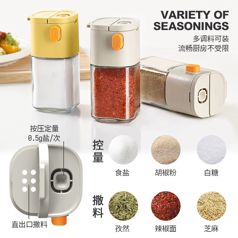 定量均匀盐罐调料盒玻璃厨房调料罐防潮密封调味罐盐罐调料瓶盐瓶