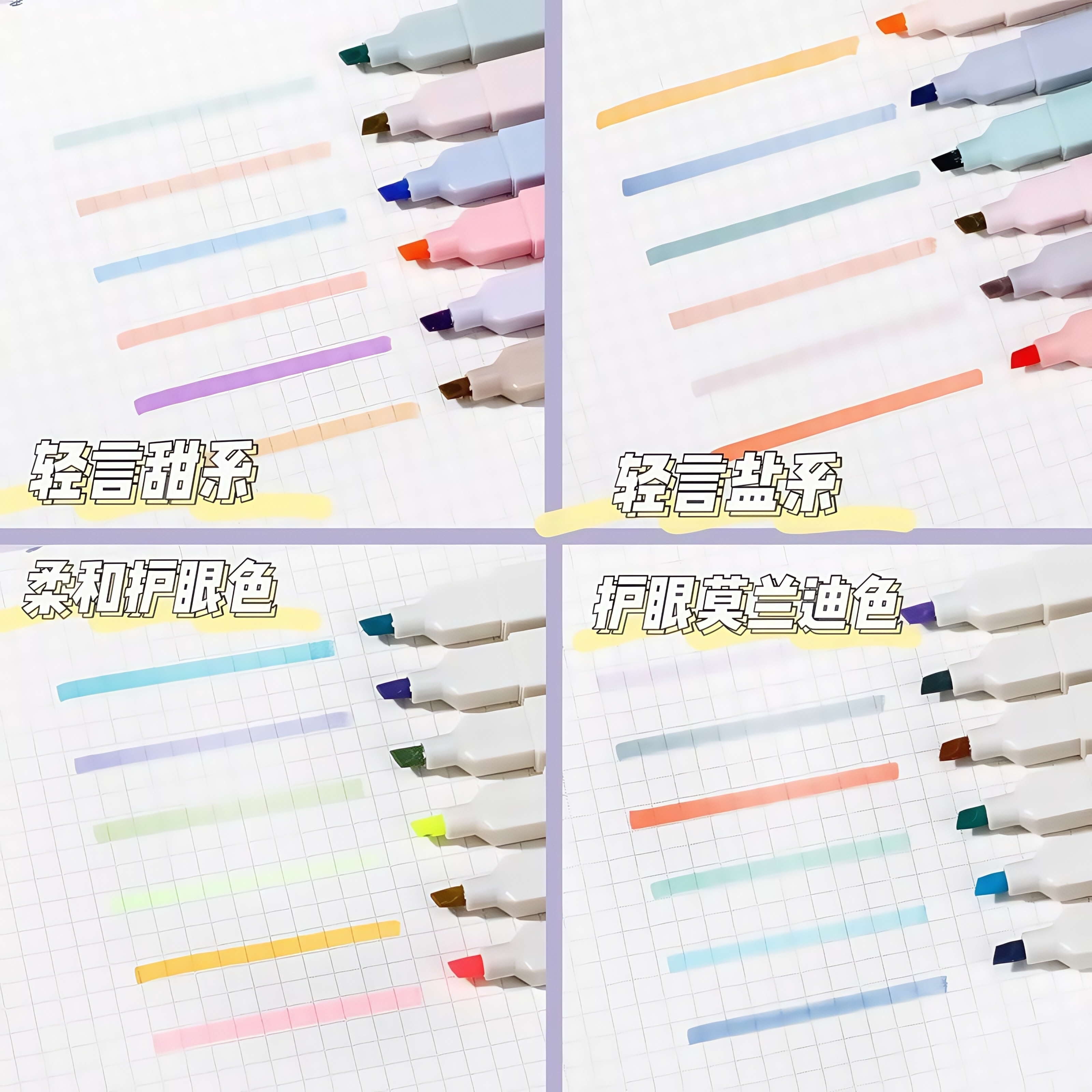 划重点轻言柔和淡色系软头荧光笔学生用护眼标记笔复古笔莫兰迪