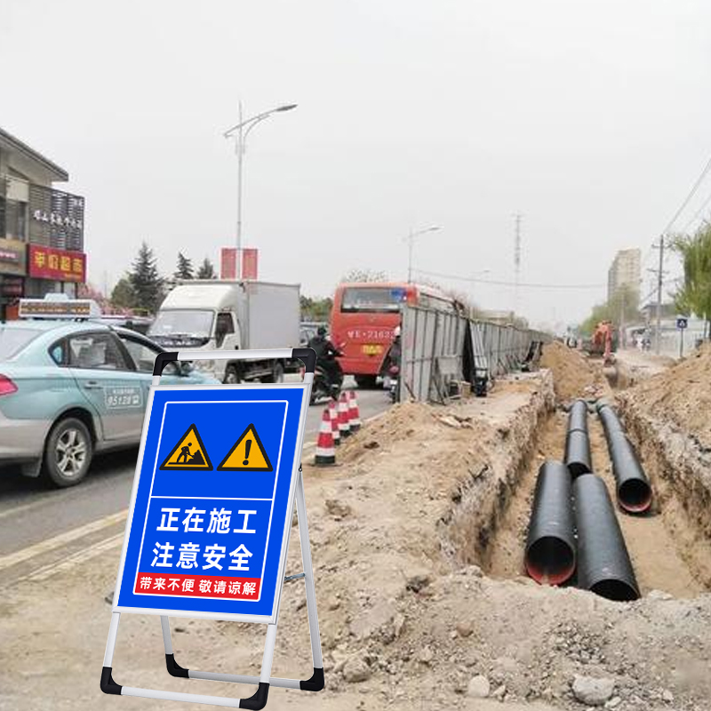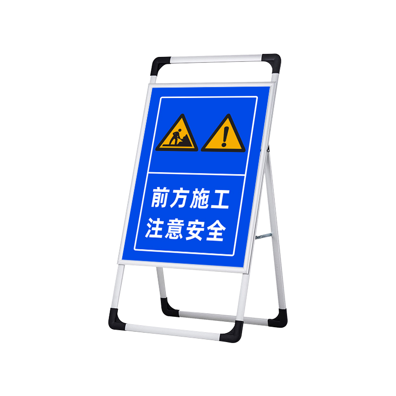 前方道路施工警示牌建筑施工告示牌手提铝合金展示架施工区域闲人