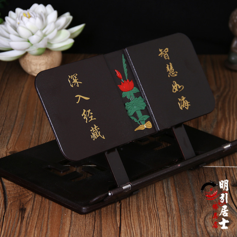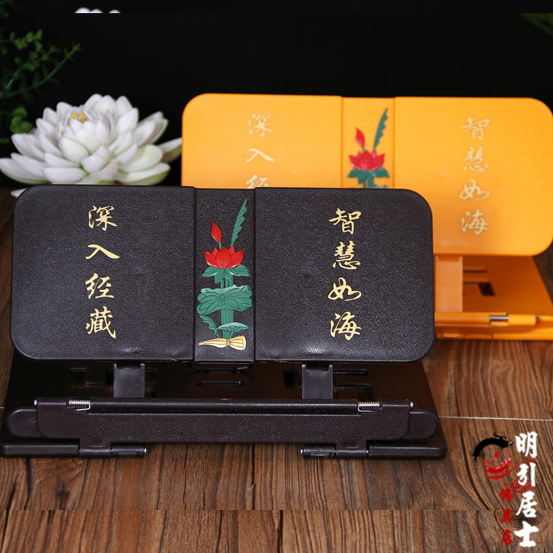 明引看书架磨砂面防划痕经书架读经架诵经架可折叠阅读架莲花咖色
