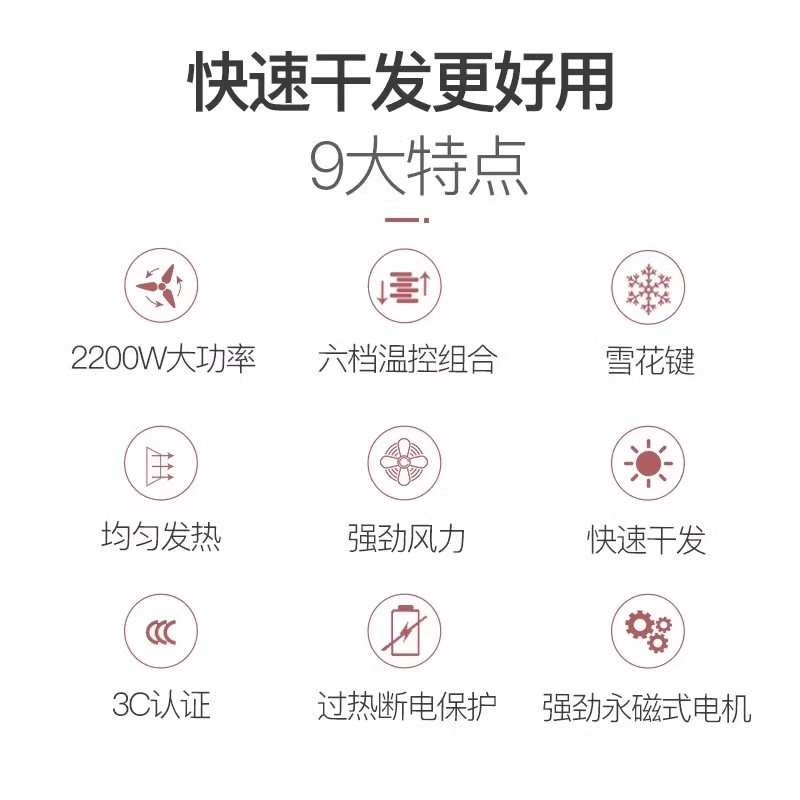奔腾电吹风机家用护发宿舍用学生高速大功率风筒大风力速干2200W