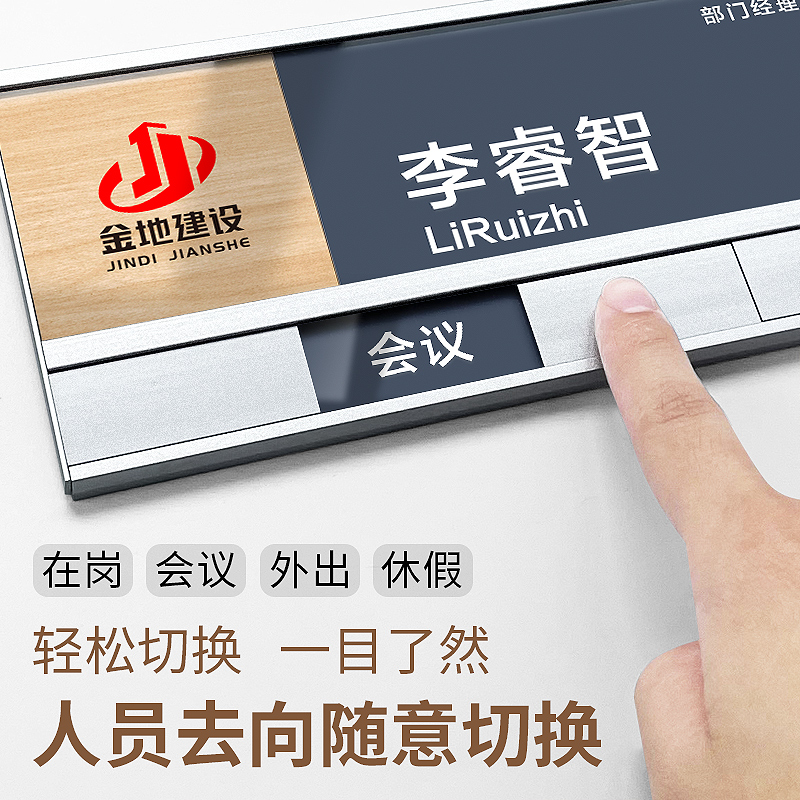 双面铝合金人员去向员工工位牌定制办公室办公桌岗位姓名牌职位座位牌可更换在岗工作状态名字牌悬挂式切换牌