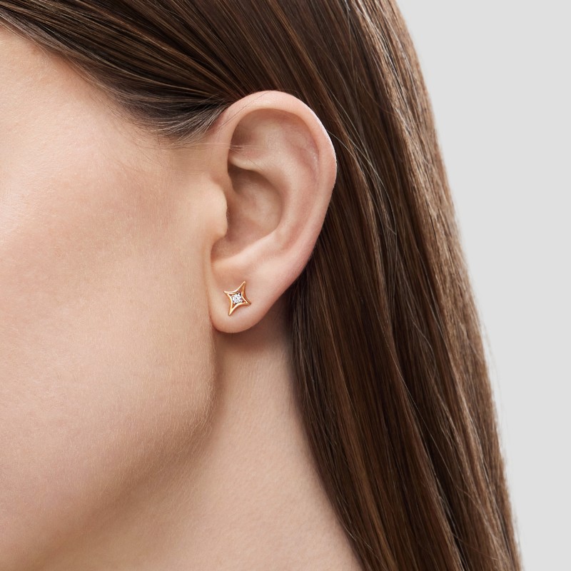 周生生18K白红分色黄金倾星系列高光星星钻石耳钉95179E