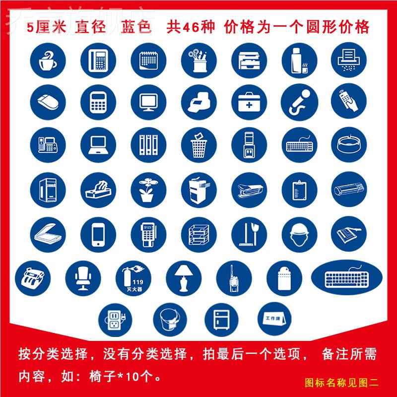 物品定位贴桌面物品定位定置标识6S管理标志标签5S定位贴5cm蓝色物品定位贴种类齐全6S办公规范标识标签标志