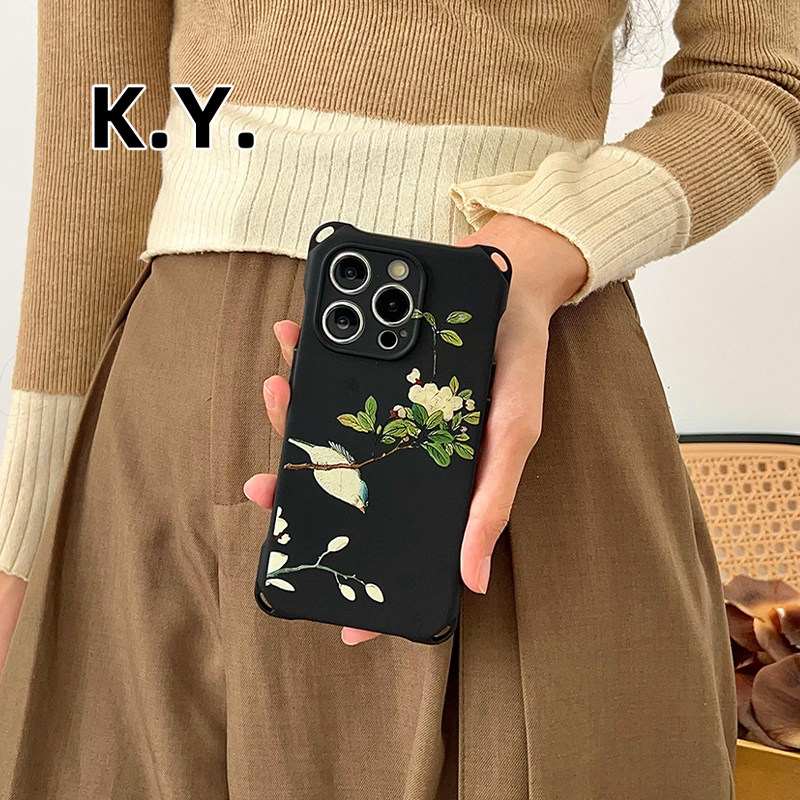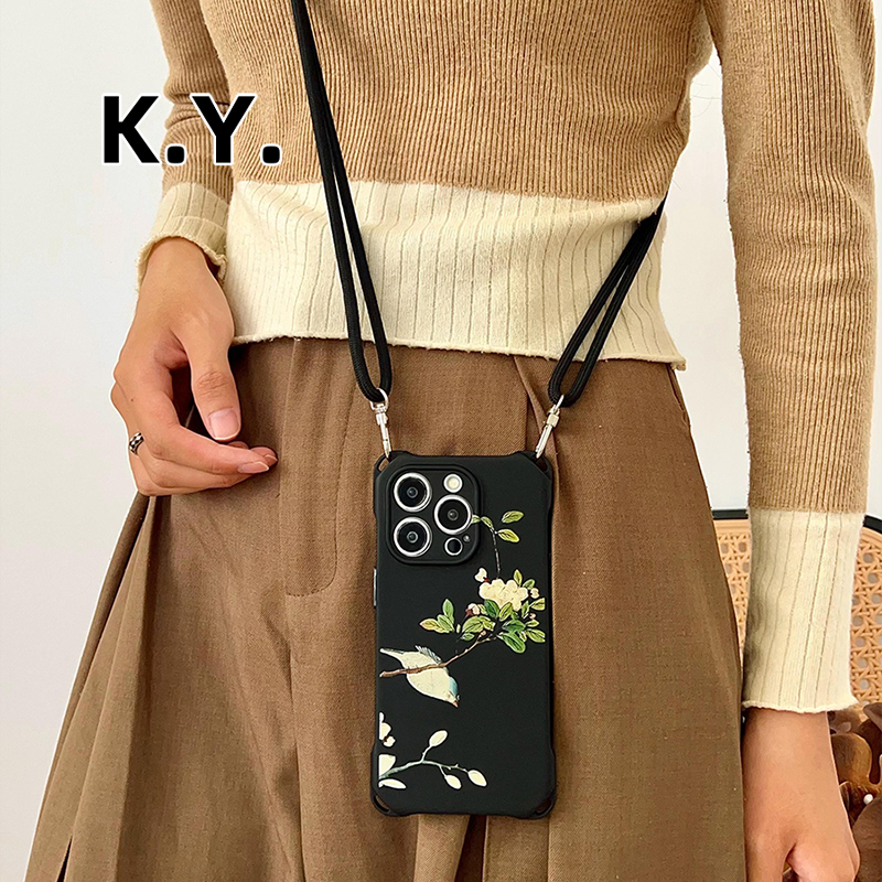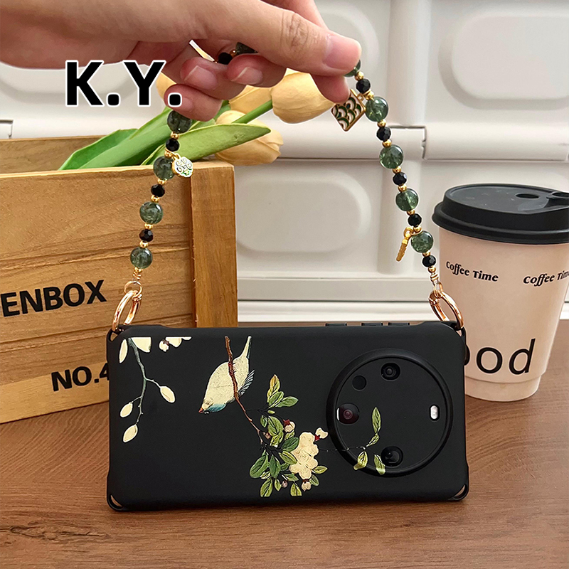 新中式树枝喜鹊手机壳带挂绳适用于iPhone16pro华为mate60/70手腕珠链背带小米14ultra四角开孔x100硅胶软壳