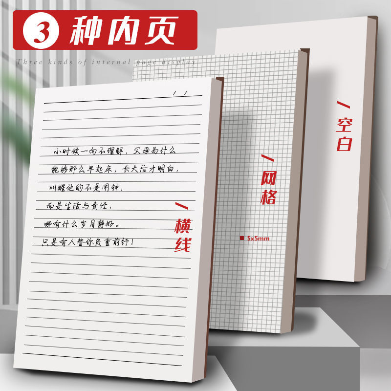 复古牛皮纸笔记本超厚空白本子加厚白纸本草稿本学习可平摊高颜值本记事本日记本a4a5小方格写作本大学生初中