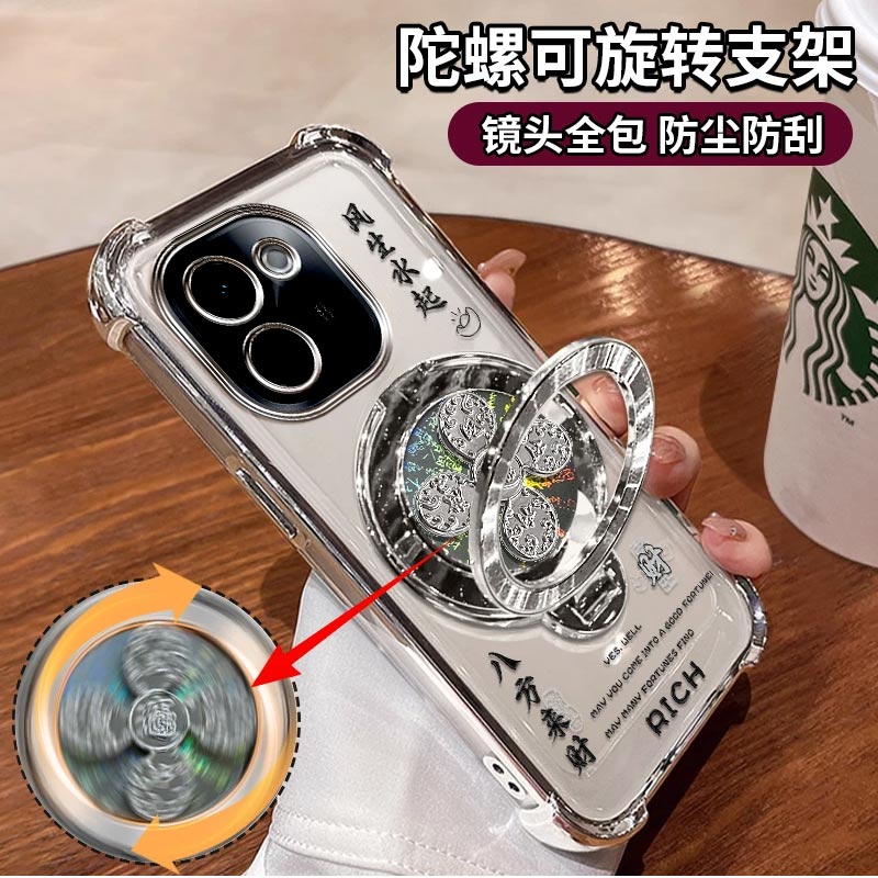 适用VIVOY200手机壳风生水起电镀四角防摔Y200i高级感简约气囊vivoY200GT解压陀螺支架新款保护套