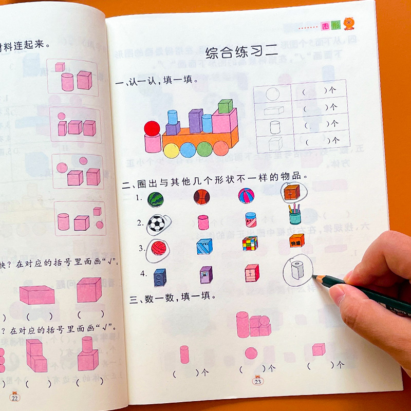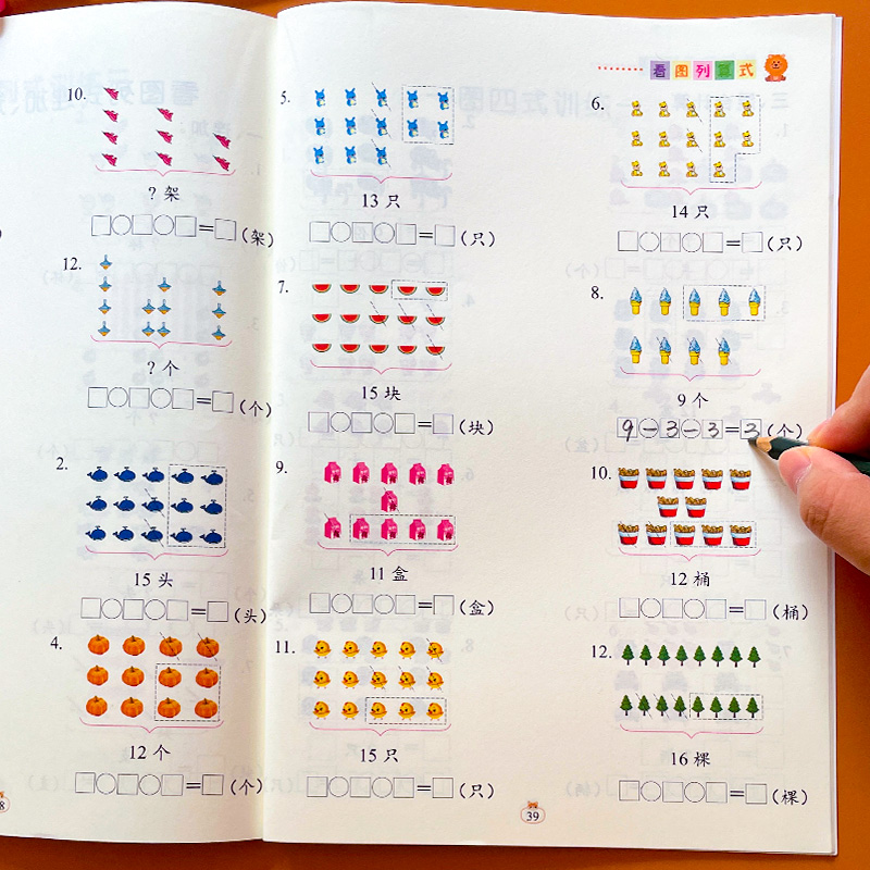 幼小衔接一日一练数学看图列算式认识位置与图形专项综合练习题思维训练幼儿园大班学前班练习册升一年级教材