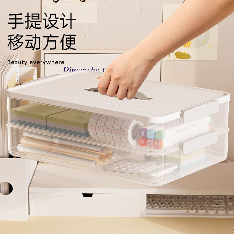 试卷收纳盒大容量透明学生学科卷子文具分类整理神器重要证件A4文件资料多层置物手提盒