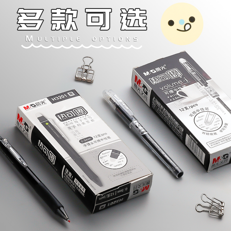晨光热可擦中性笔黑色晶蓝色红色可檫写擦拭摩易可察口擦水笔芯可以擦掉的圆珠红笔小学生用三四年级上册专用