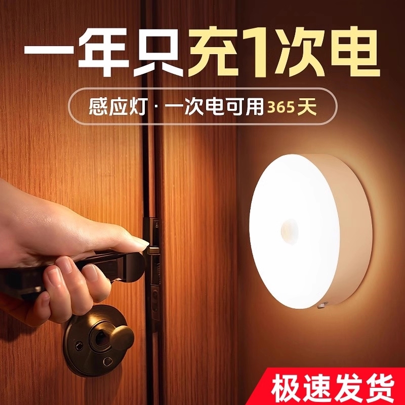自动人体感应灯入户门起夜宿舍卧室睡眠侧发光过道充电小夜灯地脚
