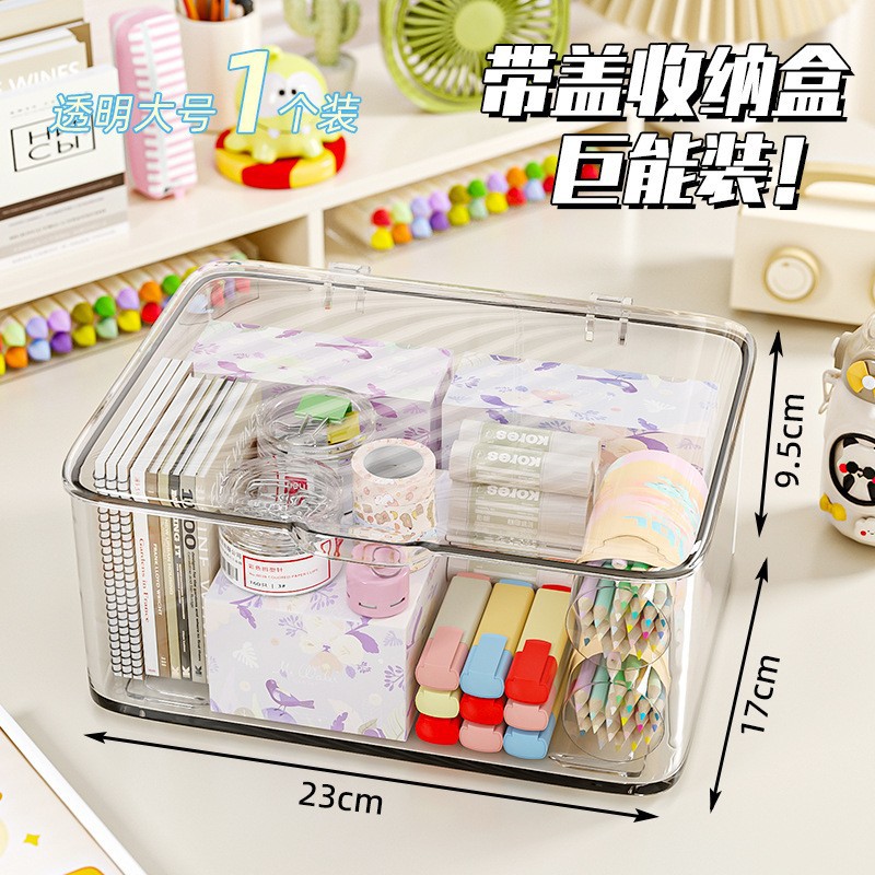 翻盖式桌面收纳盒透明亚克力防尘整理盒卧室宿舍办公室带盖杂物筐