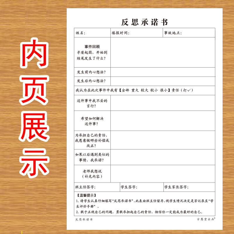 反思承诺书班级管理违反课堂纪律课堂秩序安全卫生等方面适合小学生中学生反思改正承诺书