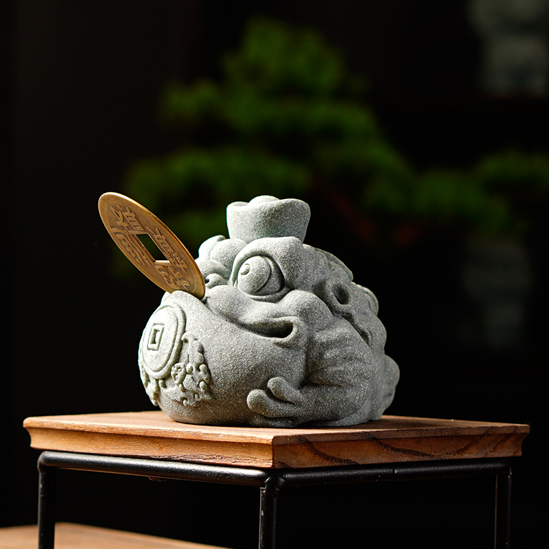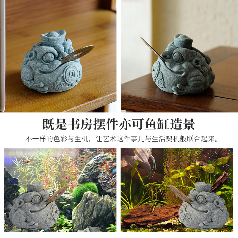 创意金蟾献瑞茶宠茶玩中式三足招财小金蟾鱼缸造景桌面装饰品摆件