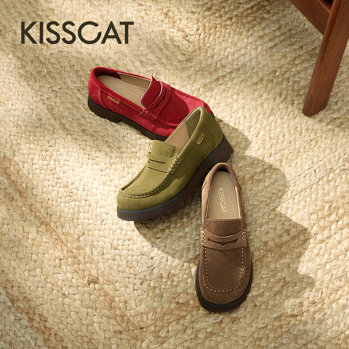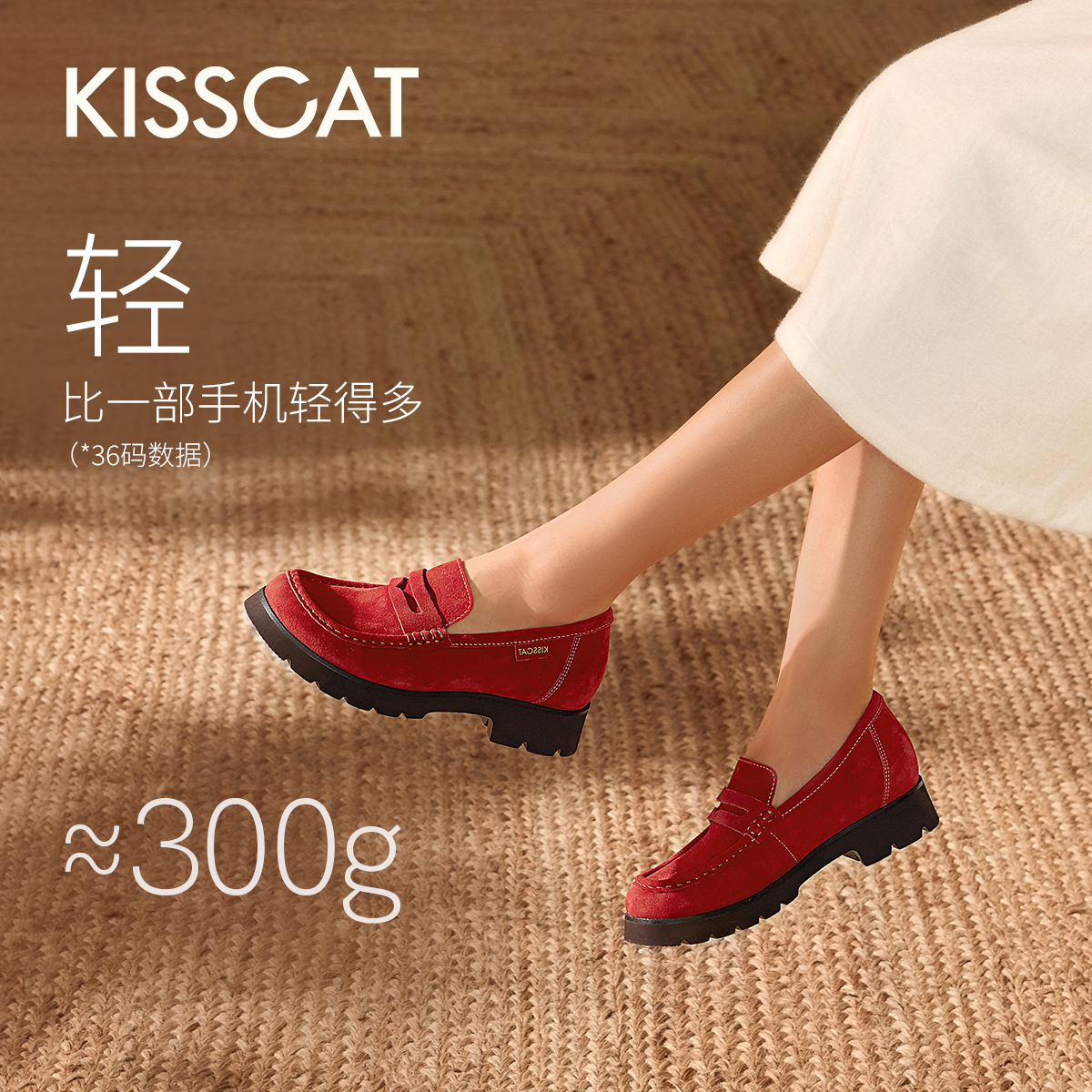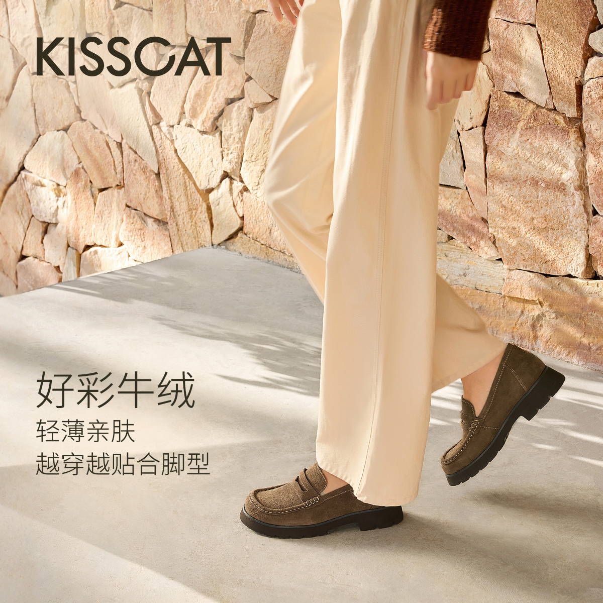 KISSCAT接吻猫[豌豆系列]大头鞋25新棕色豆豆鞋乐福鞋厚底不累脚