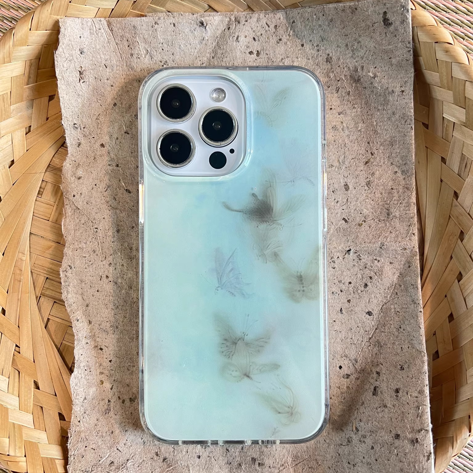 叶菽原创定制《蓝蝶迷香》新中式国风小众高级感imd双层适用iphone16/17/13/14/15promax不会撞壳苹果手机壳