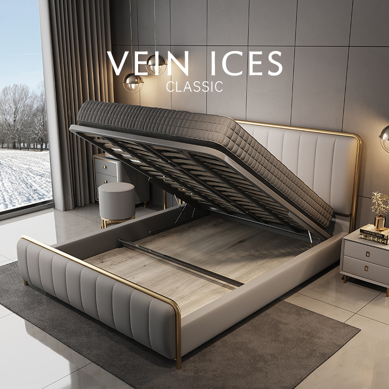 意式轻奢真皮床储物平移气压款储物双人床大黑熊软包床主卧结婚床