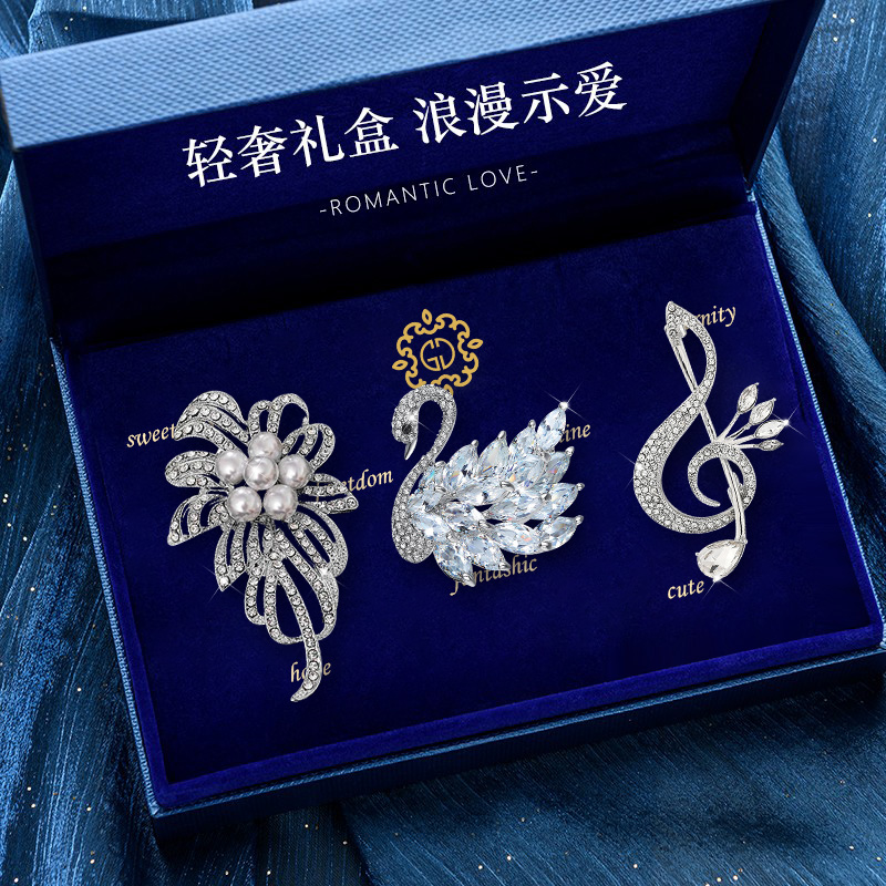 高级感优雅天鹅胸花气质百搭胸针奢华别针配饰生日走心礼物送女生