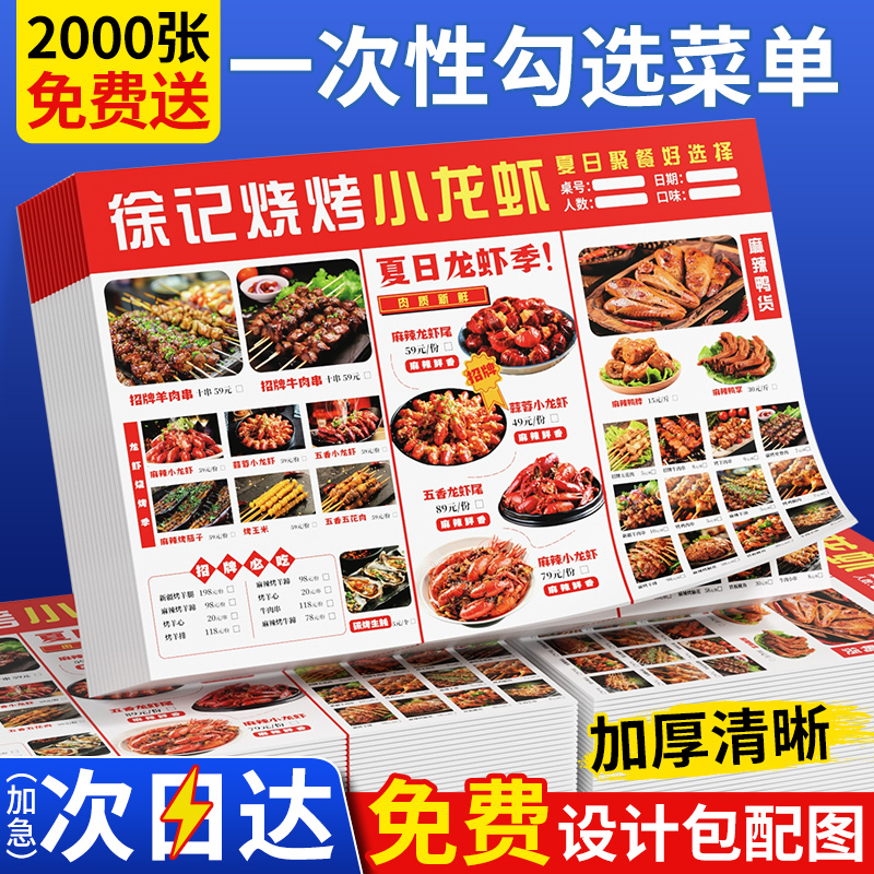菜单设计制作一次性勾选菜单打印烧烤店点菜单定制餐饮火锅饭店菜