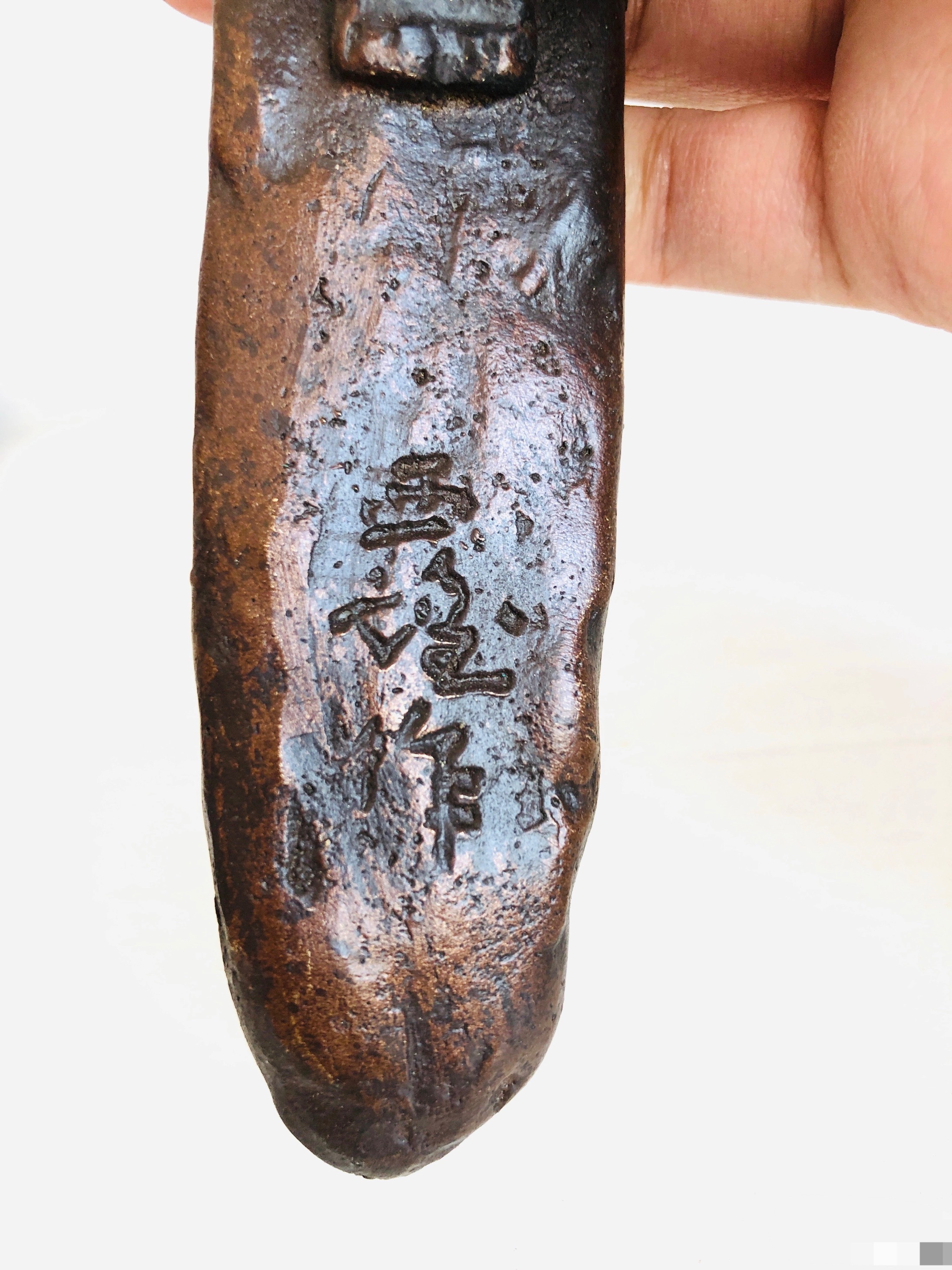 北村西望作铸铜猫文镇,长高18*6cm,重量628g,少见的名家作品。