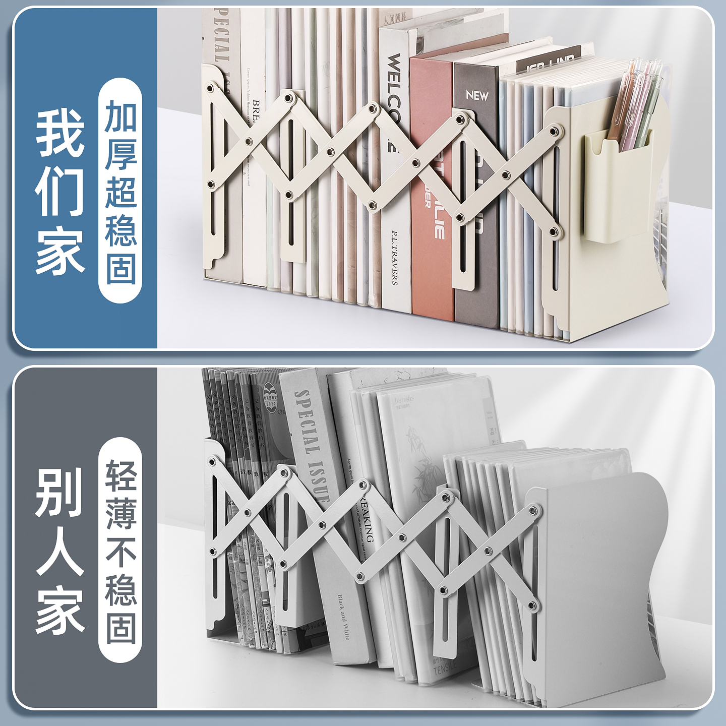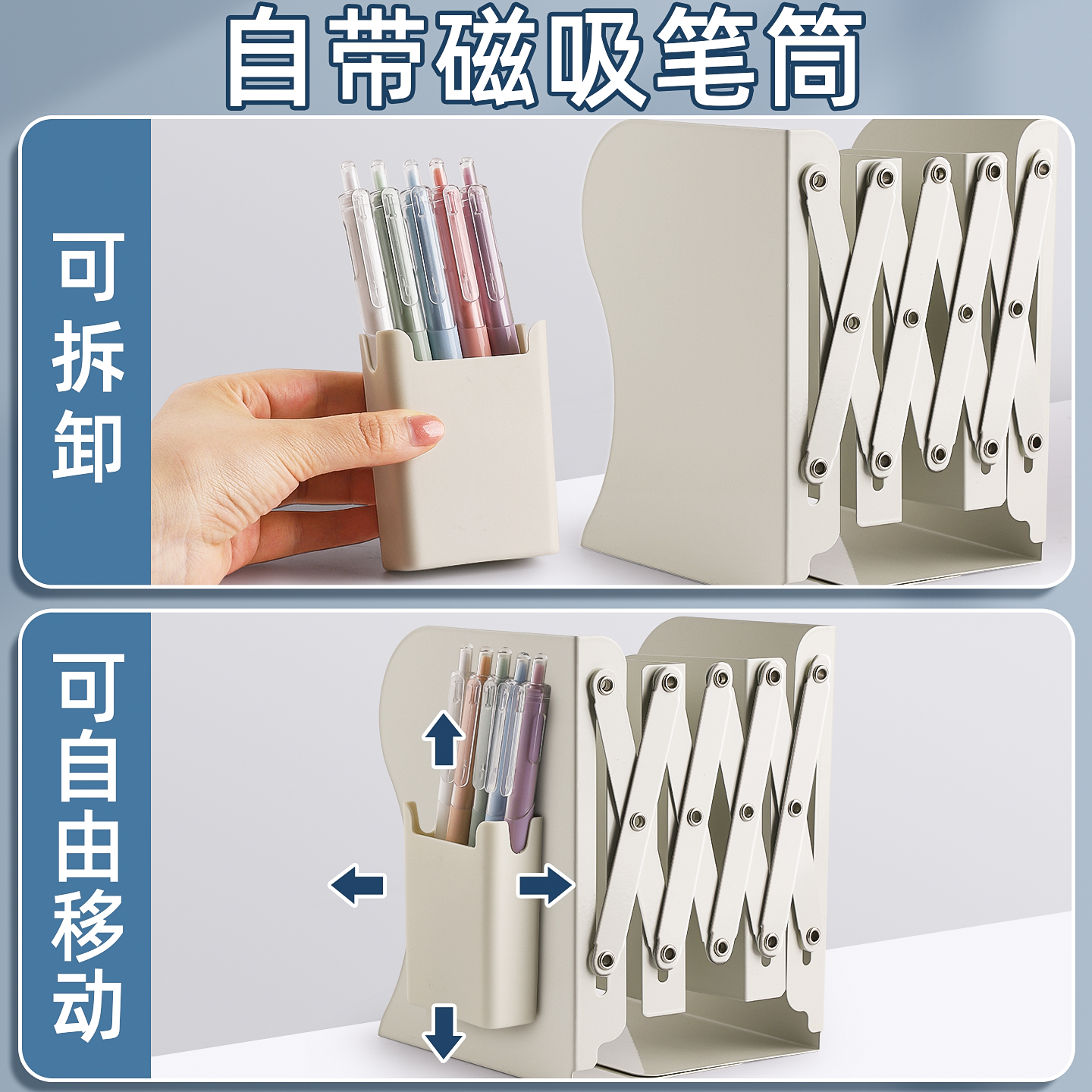可伸缩书立带笔筒书架一体桌面书本折叠固定书本收纳架高中生挡板书夹立架学生用桌上收缩立书架创意放书神器