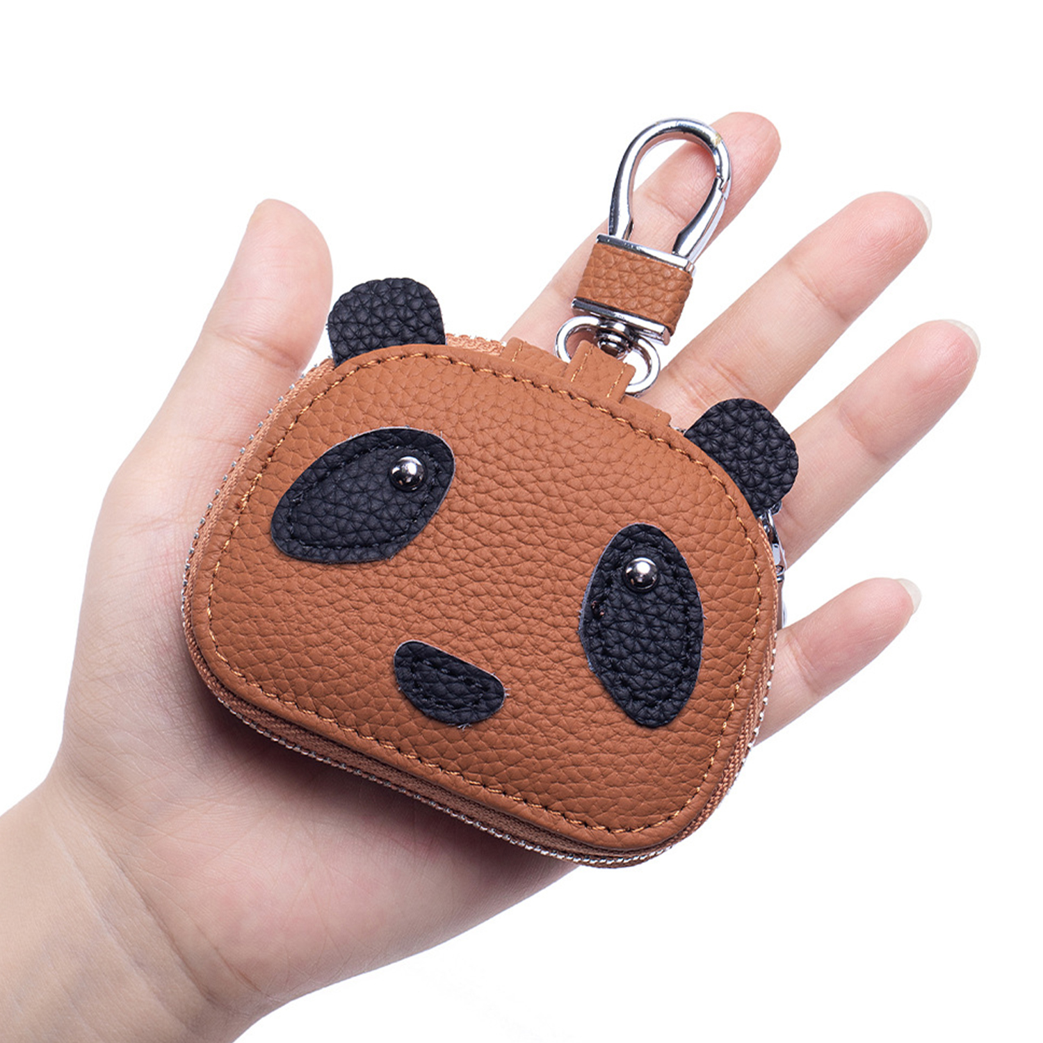 真皮小巧钥匙包新款熊猫蓝牙耳机保护套头层牛皮腰挂通用锁匙包